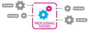 Dedicated API and SDK allow to easily build plugins that can request MEDIANATE nodes to extract thumbnails and analysis output results for individual frames or entire video streams. All output resultsare stored and managed for future search purpose. All plugins are dynamically taken into account by all distributed MEDIANATE processing nodes with no need of reinitialization.- High volume data processing:Distribution of processing tasks among multiple cooperating computing nodes.Handling multi core and multi CPU architectures in every nodes.Centralized tasks scheduling and distributed processing.